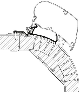 Der Adapter besteht aus 3 Halterungen. Für Markisenbreiten von 375 bis 500 cm.
