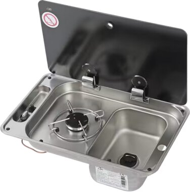 1-flammige Kocher-Spülenkombination mit rechteckigem Becken. Mit