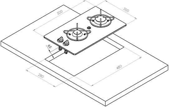 Carbest Einbau-Gaskochfeld 2-flammig, Glas, Schwarz, Brenner hintereinander