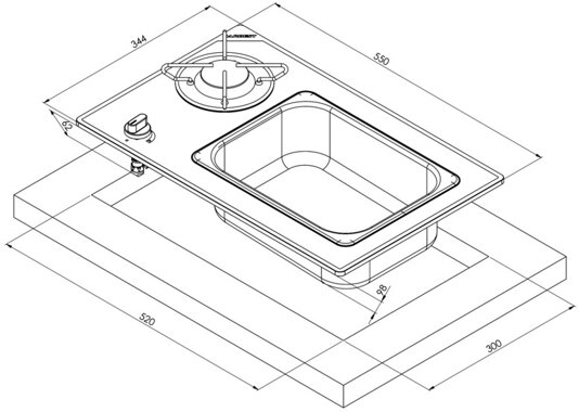 Carbest Kocher-Spülenkombination 1-flammig, Becken rechts, Glas / Edelstahl
