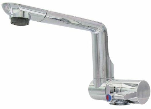 Dreh- und schwenkbarer Automatikhahn mit Schalter (3 A). Wassermenge und Temperatur sind getrennt einstellbar. Druckfest bis 1,5 bar, daher nur für Tauchpumpen.