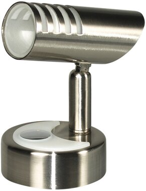Micro-LED-Spot 12V, 1W Power LED, Touch-Schalter, Nickel. Metall, verchromt gebürstet mit Glasschirm und Touchschalter, dreh- und schwenkbar. 95x55x100mm.