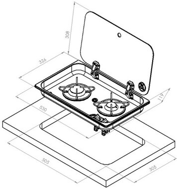 Edelstahl Einbau-Kocher mit Glasabdeckung ASO - 2-flammig
