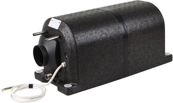 Elektroanschluss 230V/500W (2,2A). Das Gerät wird an eine Umluftheizung angeschlossen und während der Heizphase wird das Brauchwasser über den eingebauten Wärmetauscher der Geräts oder, im Stand, über die eingebaute Elektropatrone erwärmt. Daus Brauchwasser wird somit kostenlos aufgeheizt und erreicht in etwas dieselbe Temperatur wie die Heizungsluft. Das Wasser wird auf 70°C erwärmt.