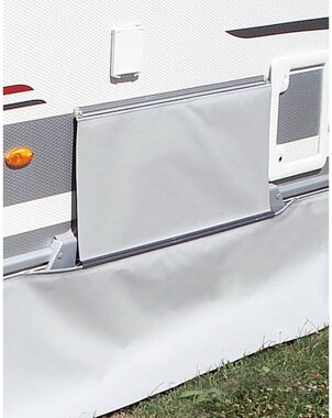 Länge 1,5 m, mit Verbindungsprofil zur Nutzung mit einem durchgehenden Caravankeller. Gefertigt aus winterfestem PVC-Planenmaterial, inkl. angeschweißtem Textilkeder.
