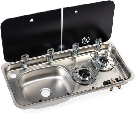 Kocher-Spülen-Kombination ? mit 2-teiliger Glasabdeckung
