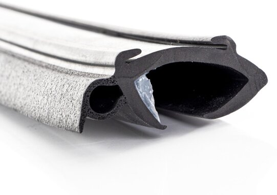 Standardprofil mit wasserundurchlässiger Dichtung zwischen Fenster und Wand. Mit Butyl-Innenseite für bessere Dichtung und Montage. Mit Wulst aus weichem Schwammgummi. Mit Einsatzschiene für Zierbänder.