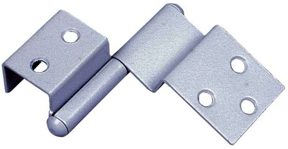 Spezialscharnier für halbaufgesetzte Türen. Schnelle und einfache Montage, robuste Ausführung. Pulverbeschichtet, farblich passend zu den Umleimern. Durch Umstecken rechts und links verwendbar. Spezialscharnier rechts, 1 Stück. Mittelgrau