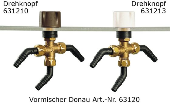 Messing-Untertischhahn. Schlauchanschluss 10 mm bzw. 3/8". Max. 6 bar. Hitzebeständig bis ca. 80°C. Ideale Verbindung mit Duschköpfen, die direkt abstellbar sind. Bohrung Ø 16 mm. Ohne Drehknopf. Untertischhahn Donau Artikel-Nr. 630103, Drehknopf Artikel-Nr.631213/631210