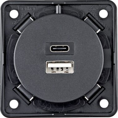 Die Berker 12 V USB Ladesteckdose mit 2-facher USB-Buchse: 1 USB-Buchse Typ A und 1 USB-Buchse Typ C.