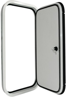 Das Klappen-/Türsystem 2000 besteht aus einem pulverbeschichteten Aluminiumrahmen und einer Füllung bestehend aus weißem Glattblech (Außenseite), Isolation aus blauem Styrofoamschaum und einer weißen Dekorplatte aus Polystyrol 1,5 mm (Innenseite).