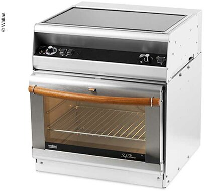 Die Wallas Herd-Backofen-Kombination 87D Diesel, die mit sicherer Diesel-Umlufttechnologie echtes Umluftgaren ermöglicht. Der Heißluftofen backt Ihren Kuchen gleichmäßig, während der Herd Ihre Mahlzeit leistungsfähig kocht. Der Ofen besteht aus starrem Edelstahl und der Herd aus strapazierfähigem eloxiertem Aluminium.